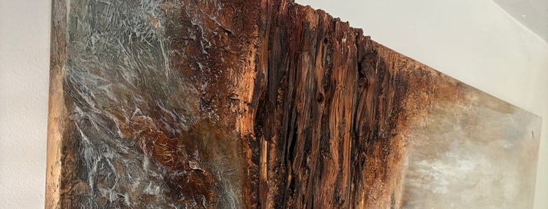 Ik hou van organische texturen en breng die tot leven door te experimenteren met diverse materialen. Door natuurlijke en afgedankte elementen te combineren, creëer ik schilderachtige oppervlakken die doen denken aan de complexe structuren van de natuur — ruw, gelaagd en aards.